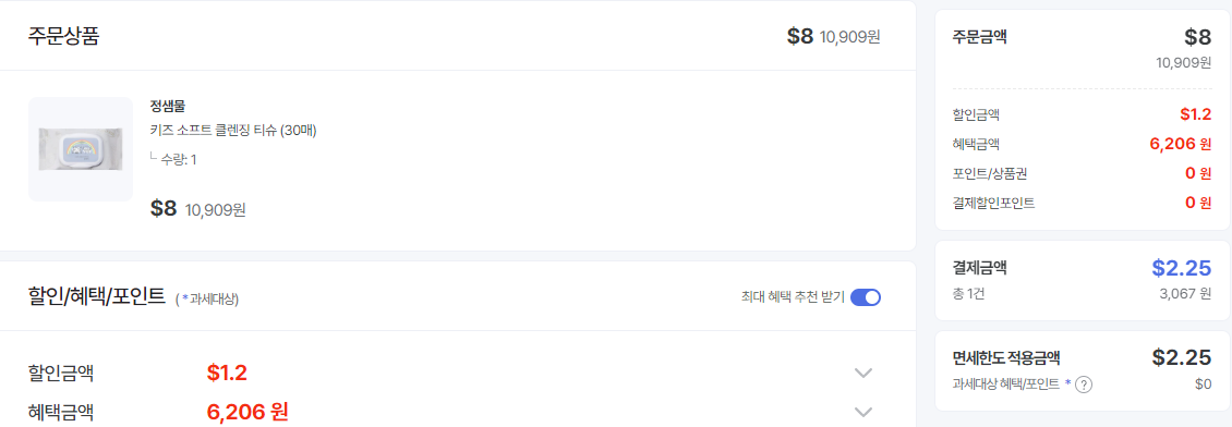 정샘물은 원래 적용되는 브랜드이긴 했는데 키즈 소프트 클렌징 티슈가 있더라구요.