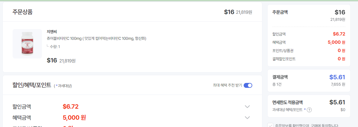 지앤씨 브랜드들도 적용되네요. 어차피 사야할 영양제라면 요것도 괜찮을듯